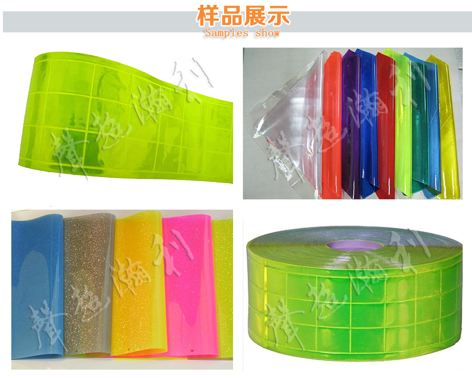 3、生產的晶格片平整不起皺。能同時生產多條反光晶格條,可在反光晶格條上印字、印花及各式圖形,配有邊廢料收取機構,本機全自動完成生產,1人可同時看管多臺反光晶格片分條機;
