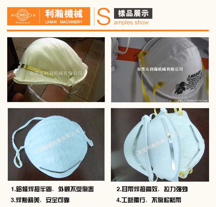 該機是利瀚公司精心研發出來針對杯型口罩上帶而規劃,其設備自動化程度較高, 將傳統比較冗雜的口罩出產工藝進行技能革新,到達從口罩鼻梁條焊接、耳帶焊接一次完結,然后大大的提高質量與產能。 1.選用德國原機技能,使用超聲波與自動化操控,將口罩鼻梁條貼合與耳帶焊接一次性完結。