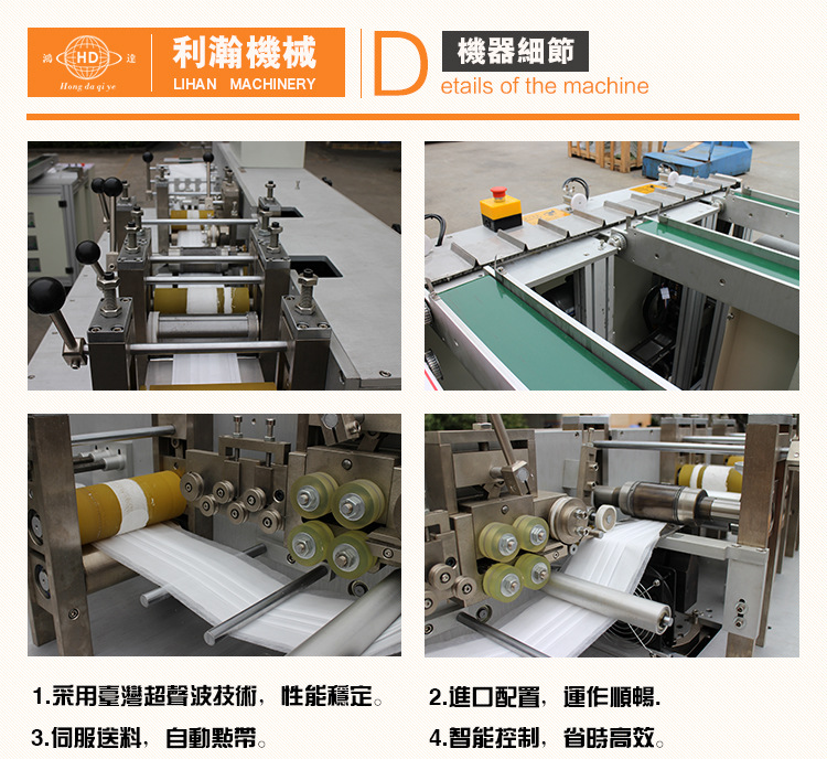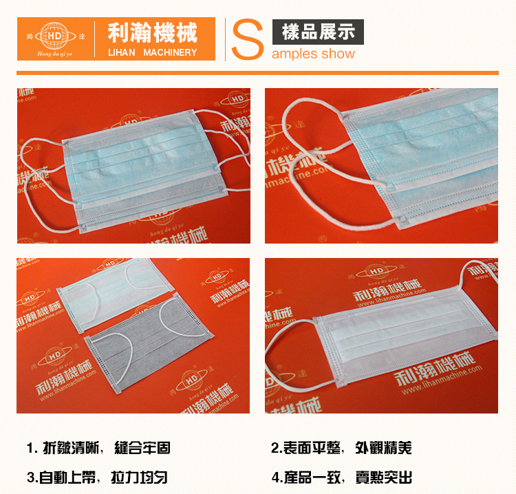 “鴻達牌”平面口罩外耳包邊主動連線制造機,是廣東利瀚機械精研出平面口罩系列一款專用設備,由四臺設備進行連線組成別離有:一臺本體制造機和三臺口罩外耳包邊設備組成;該機從質料進入、主動打片、主動移位、主動排列、主動包邊上帶到制品輸出,全程智能制造,一機完結口罩的數道出產工藝,削減口罩在出產過程人體的觸摸,然后輕松到達職業檢測規范,進步產品的環保出產需求設備特色: