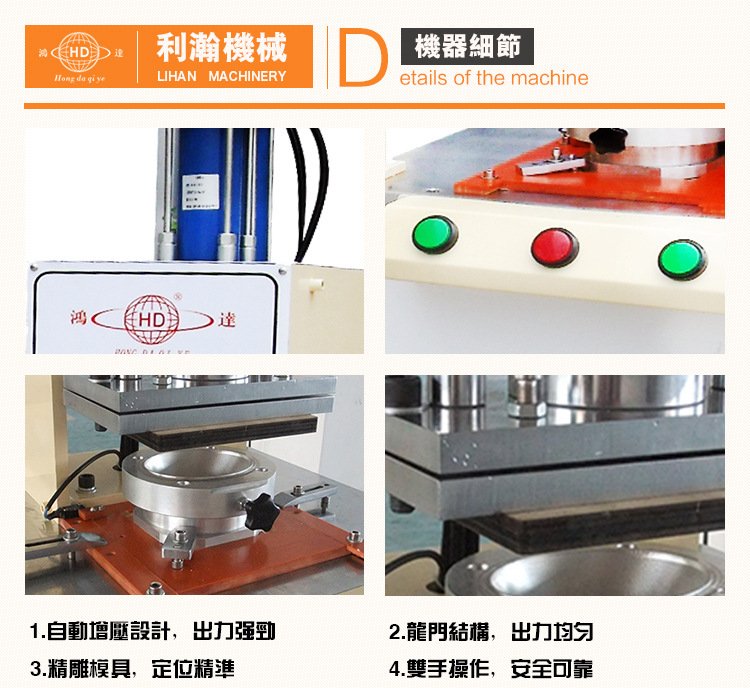 “鴻達”牌半自動口罩沖切機是利瀚企業熟練掌握口罩生產工藝后, 依據不同客戶需求移風易俗的一款專用設備,本機操作靈活, 可合適不同型體的口罩進行周邊沖切, 選用液壓二次沖切, 加裝感應用具確保安全及口罩周邊沖邊無毛絲, 可多個口罩一起切邊.其特色如下