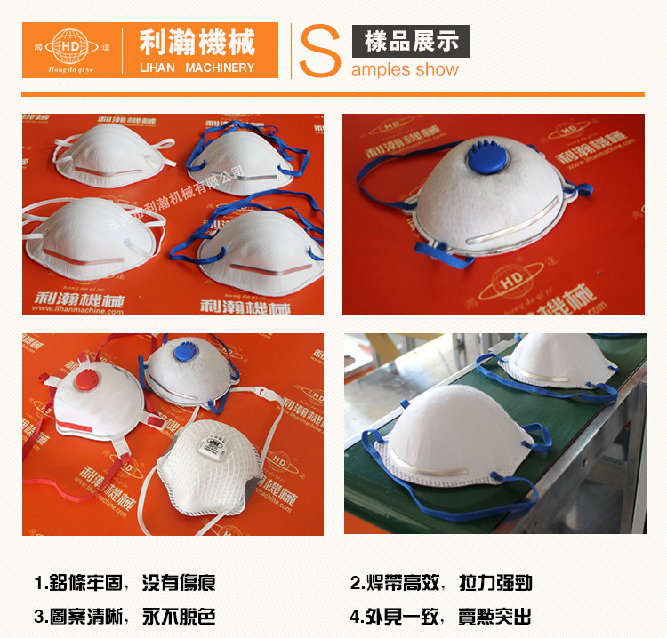 全主動杯型口罩鼻梁條耳帶點焊機是利瀚公司精心研發(fā)代表行業(yè)界的新效果,是現(xiàn)在行業(yè)界先進(jìn)的杯型口罩主動化設(shè)備,該設(shè)備選用先進(jìn)的電腦管理程序,將杯體主動輸入到本機內(nèi),經(jīng)過伺服旋轉(zhuǎn)體系, 體系主動將口罩轉(zhuǎn)移到各自部位,經(jīng)過高效、精細(xì)的組合進(jìn)行貼鼻梁、印刷LOGO、主動焊帶、到制品輸出等全主動化作業(yè),然后大大的提高質(zhì)量與產(chǎn)能,全主動N95口罩鼻梁 條耳帶焊接機是出產(chǎn)N95、防塵、各款杯型口罩, 抱負(fù)的代替產(chǎn)品。