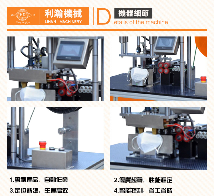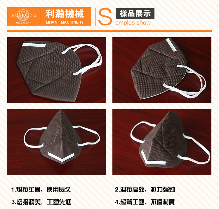 “鴻達”牌折疊口罩塑膠條焊接機是利瀚專為口罩貼鋁條而規劃的新產品,該設備是使用程序控制完結主動化出產,從鼻線進入、主動剪切、恒溫熱壓貼條均為主動化作業。制品外觀精巧,貼條結實,產能高效。