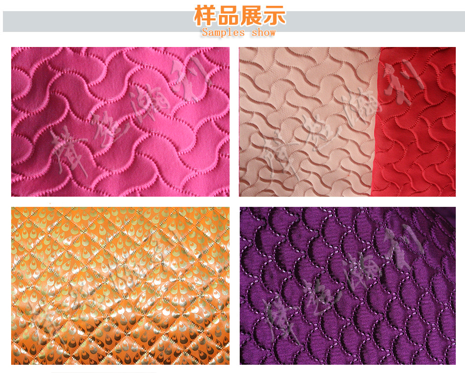 5、利用滾輪模具,換模容易,可縫合出花樣繁多且復雜的非連續性及對稱性圖案,可依客戶需求開發各式花形圖案;