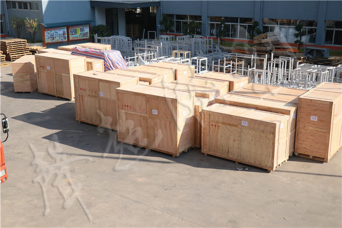經過了多次調試,檢查,試樣,以及客戶的驗收,設備進行入了打包準備,兩種設備分別為杯型四工位口罩定型機和轉盤式杯型口罩焊接沖切機;
