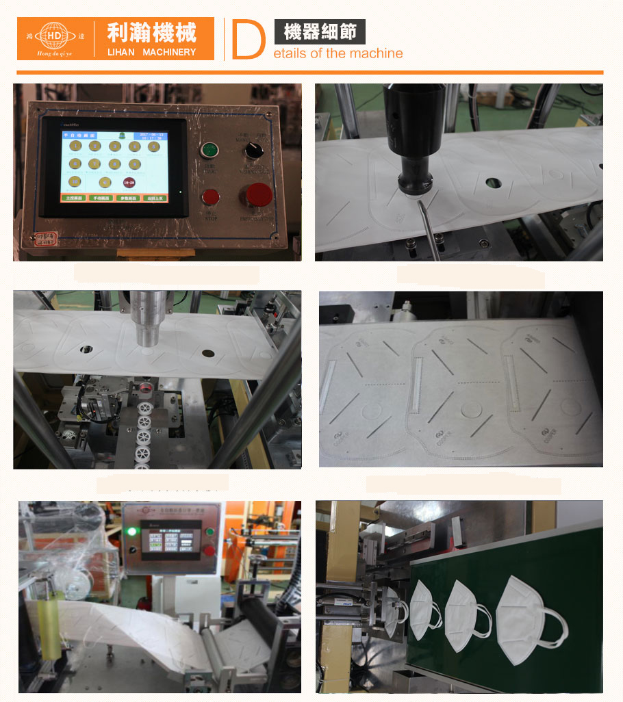 3.生產(chǎn)成品效率高,折疊成型準(zhǔn),耳帶焊接結(jié)實(shí)美觀、拉力強(qiáng)勁,自動(dòng)埋鼻梁條和自動(dòng)印刷功能;